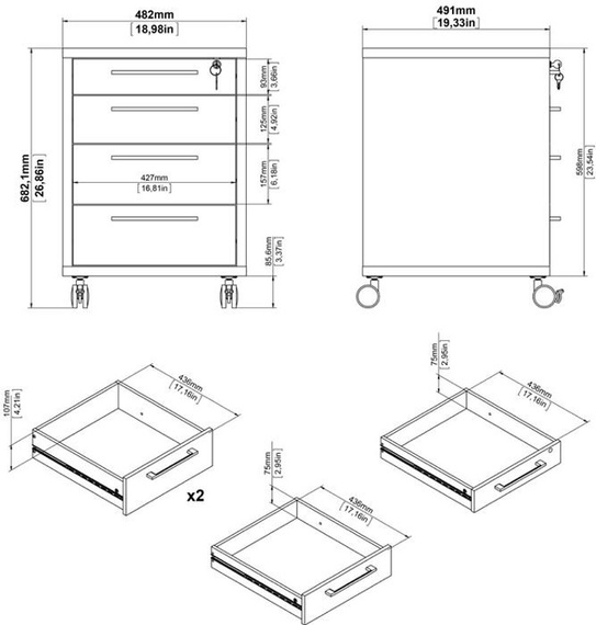 Kontenerek pod biurko szary / jackson hickory mat 41 x 48 x 61 cm Sign