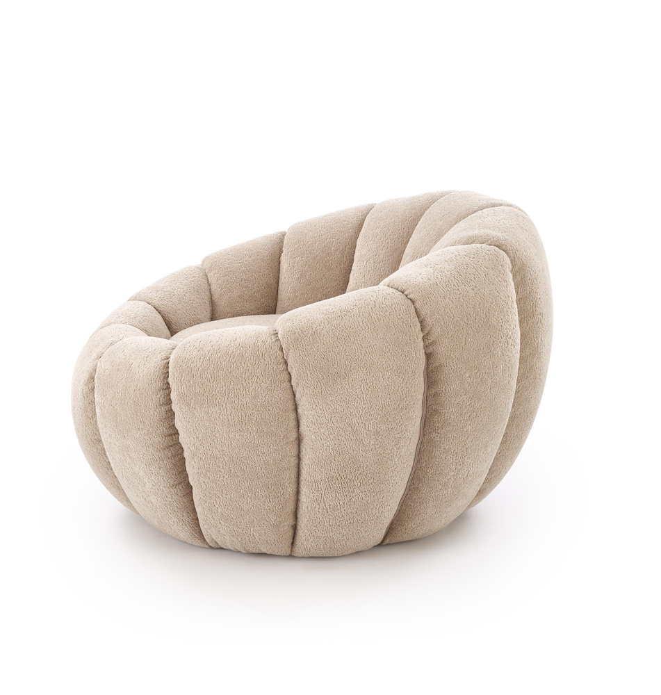 Fotel Gaspar 2 zachwyca swoim miękkim, otulającym kształtem i eleganckim wykończeniem w beżowej tkaninie. Jego forma przypomina przytulne gniazdo, które zaprasza do wypoczynku i dodaje wnętrzu niepowtarzalnego charakteru.