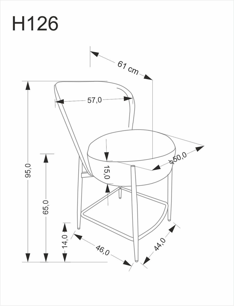 Dzięki dobrze wyprofilowanemu oparciu i optymalnej wysokości siedziska (65 cm), H126 oferuje wygodę nawet przy dłuższym użytkowaniu. Szerokość 57 cm i głębokość 61 cm zapewniają przestrzeń do swobodnego siedzenia bez uczucia ograniczenia. Mebel jest idealny zarówno do codziennych posiłków, jak i wieczornego relaksu przy lampce wina.