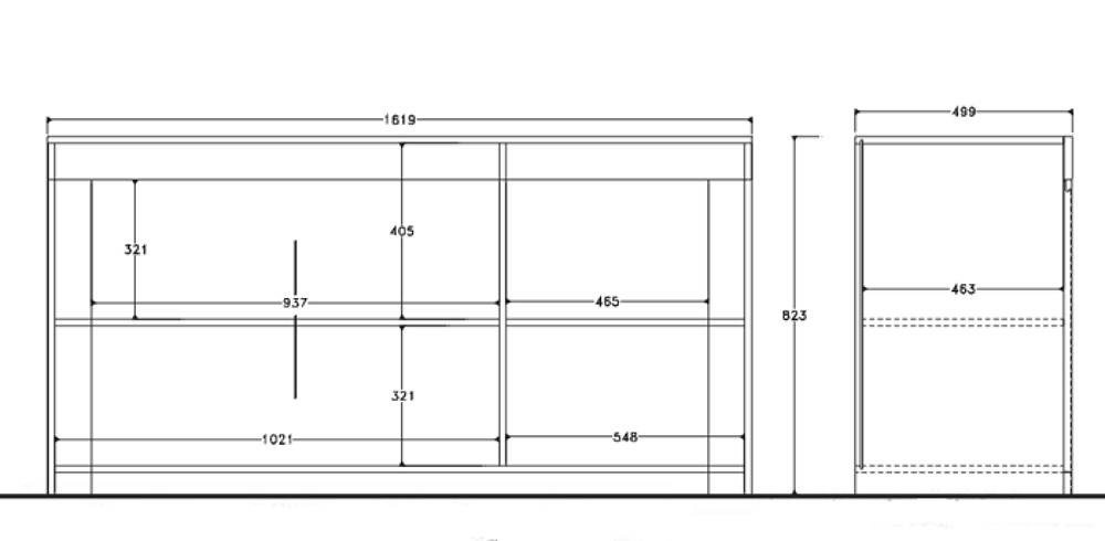 Mebel ma wymiary 162 cm szerokości, 50 cm głębokości i 82 cm wysokości. Dzięki tym proporcjom komoda oferuje dużo miejsca do przechowywania, nie przytłaczając jednocześnie wnętrza. Jest to doskonałe rozwiązanie dla osób ceniących funkcjonalność połączoną z estetyką nowoczesnego designu.