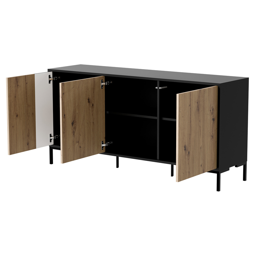 Komoda Arden, 151 x 40 x 74 cm, 3 drzwi, czarny mat / dąb artisan
