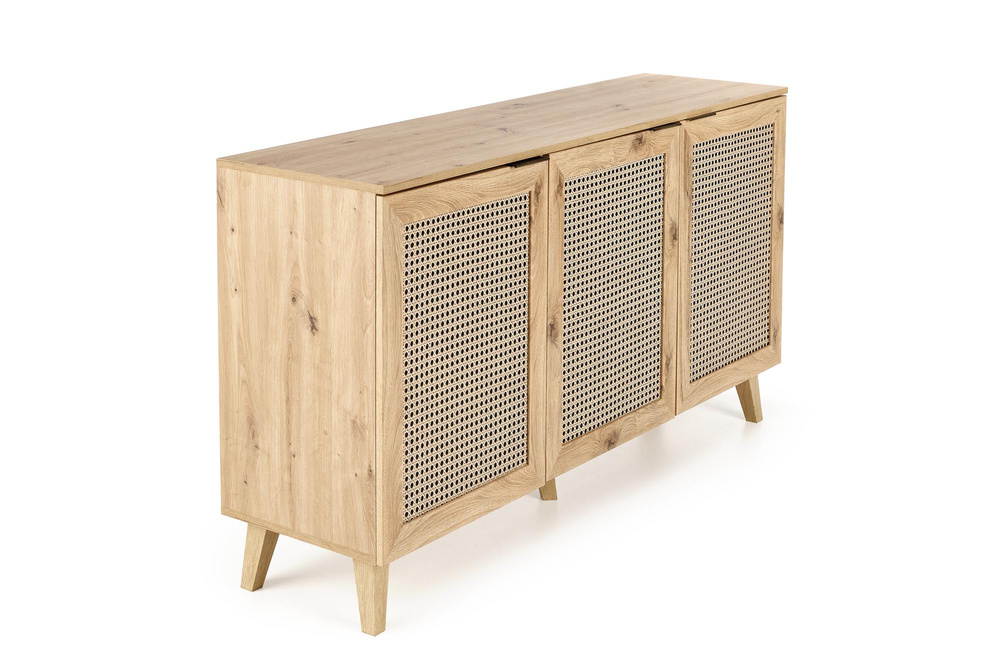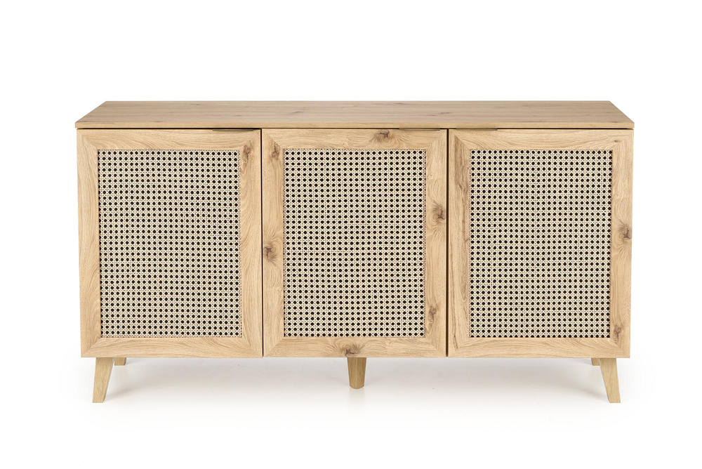 Komoda Borneo to doskonały wybór dla osób poszukujących naturalnego akcentu do swojego salonu, jadalni lub przedpokoju. Choć jej wygląd przypomina mebel z plecionki, w rzeczywistości jest bardzo łatwa w utrzymaniu. To zasługa nadrukowanego wzoru plecionki, który zapewnia estetyczny efekt bez dodatkowych trudności związanych z pielęgnacją.