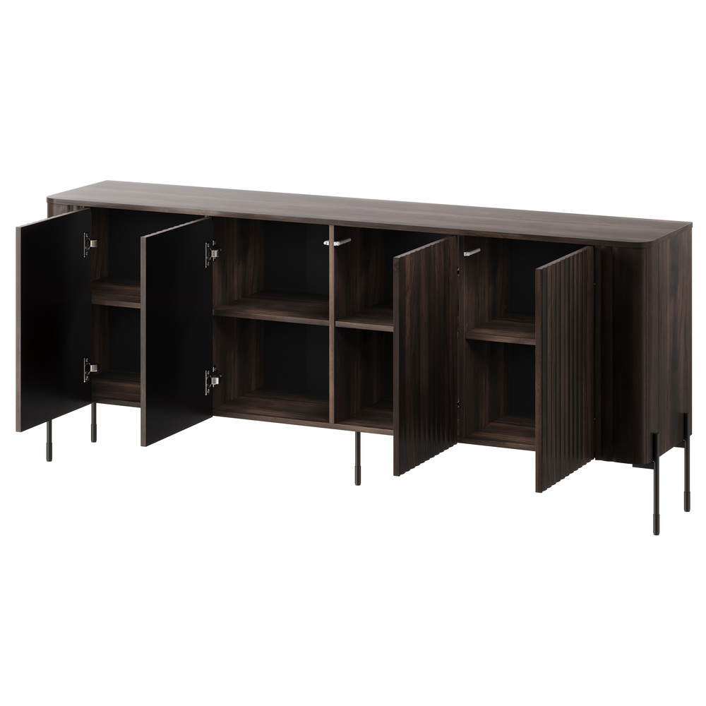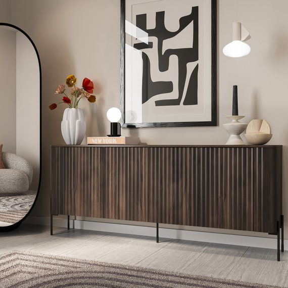 Wyrazista, elegancka i ponadczasowa – komoda Aria w kolorze dąb barokowy ristretto to połączenie szlachetnego wybarwienia drewna z czystą, nowoczesną formą. Jej pionowe ryflowania nadają bryle rytm i charakter, a bezuchwytowy system push to open podkreśla minimalistyczną estetykę, w której detale odgrywają kluczową rolę.