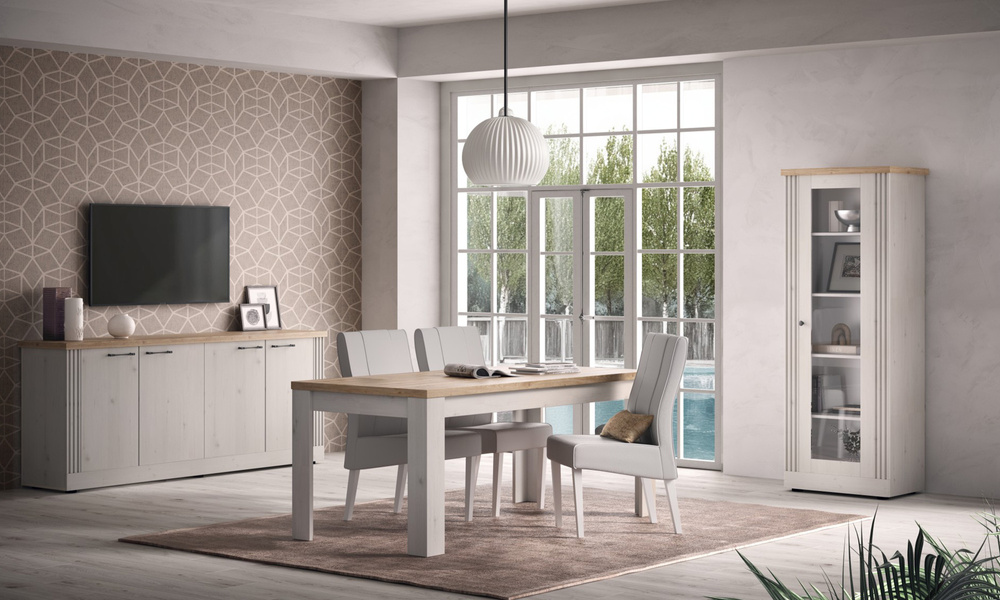 Avina to komoda, która wnosi do wnętrza spokój, ład i elegancję inspirowaną stylem country. Ciepła kolorystyka drewna i solidna forma sprawiają, że mebel przyciąga wzrok, a jednocześnie doskonale wpisuje się w ponadczasowe, przytulne aranżacje.