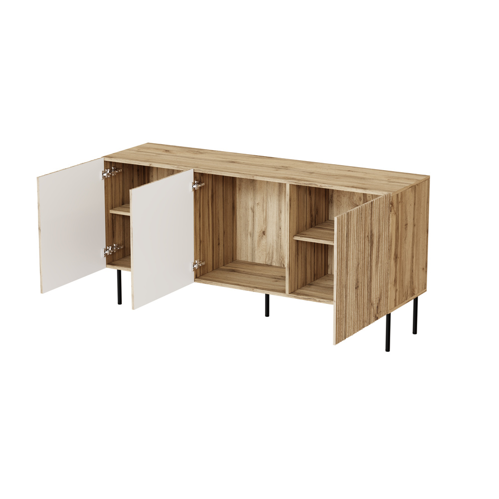 Komoda z drzwiami frezowanymi Fiori, 152 x 42 x 75, dąb wotan, nóżki czarne