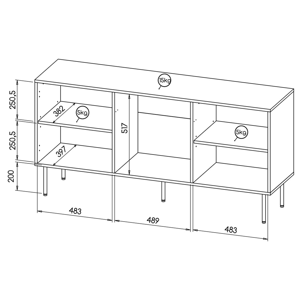 Komoda ma wymiary 152 × 42 × 74,5 cm, dzięki czemu idealnie wpisuje się zarówno w przestronne wnętrza, jak i te o ograniczonej powierzchni.