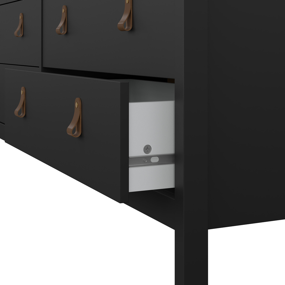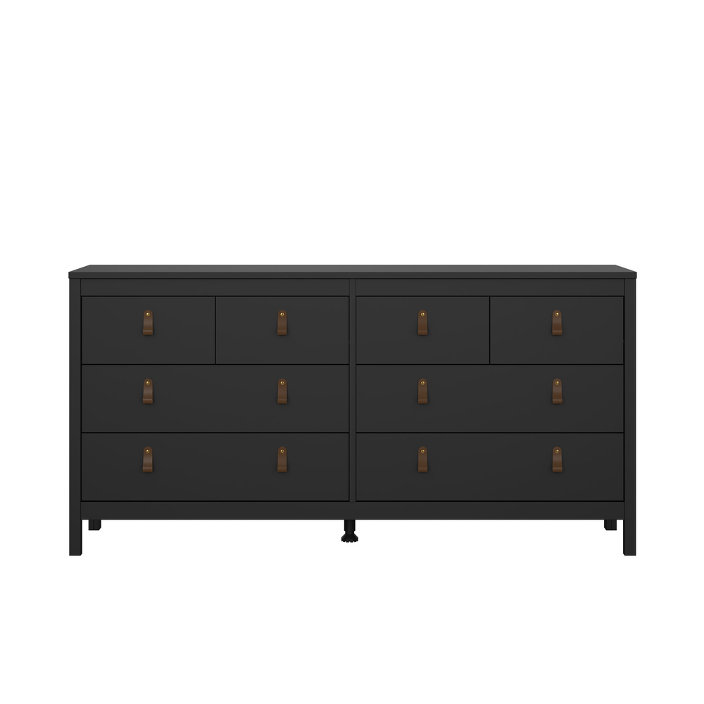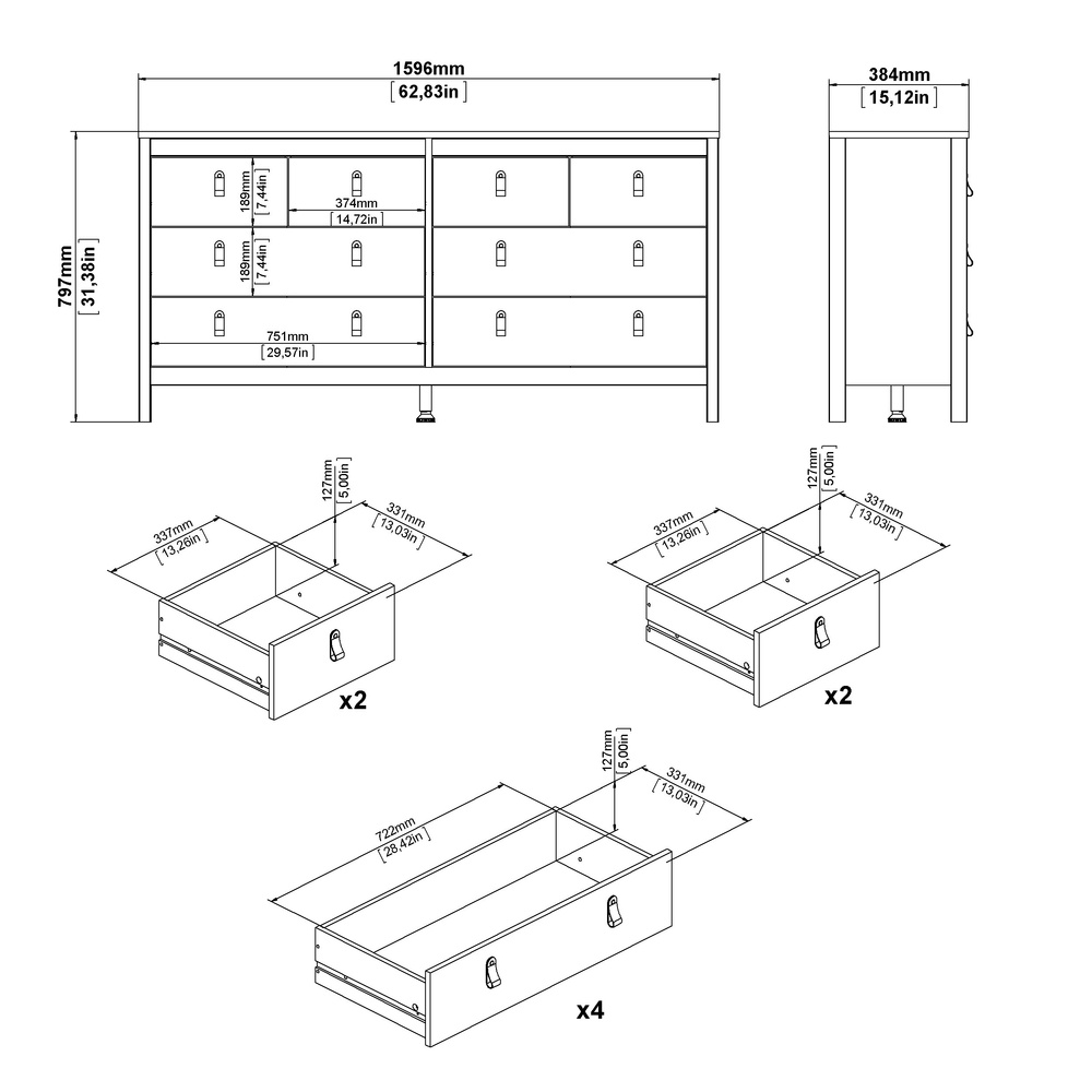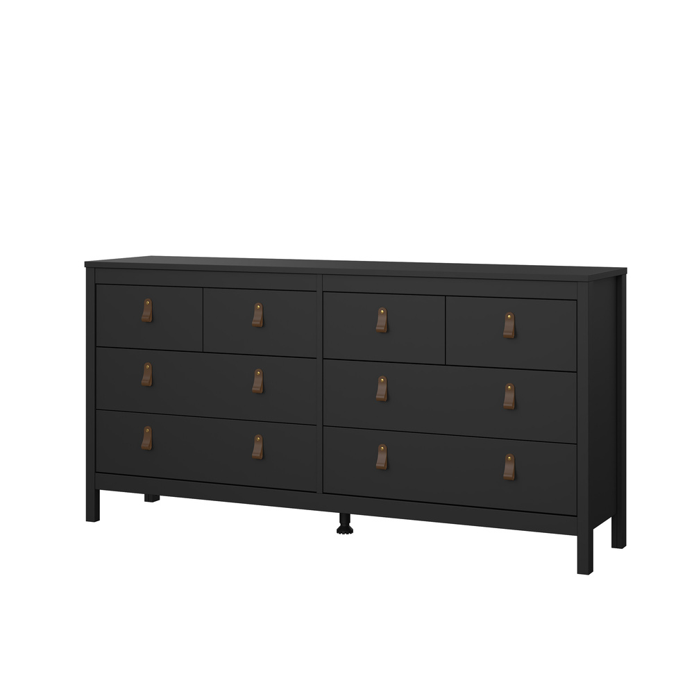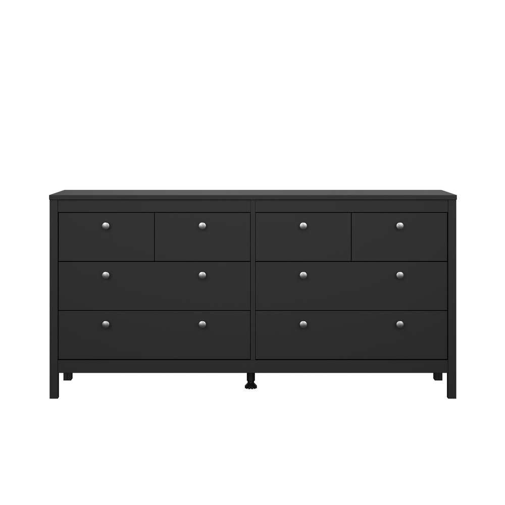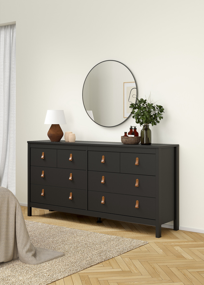 Dzięki ośmiu przestronnym szufladom, komoda Madrid pozwala na doskonałą organizację i utrzymanie porządku w każdym wnętrzu. Płynnie działające prowadnice ułatwiają codzienne użytkowanie, a matowa powierzchnia jest odporna na ślady palców i łatwa do czyszczenia. Komoda idealnie sprawdzi się zarówno w sypialni jako miejsce na odzież, jak i w salonie czy przedpokoju do przechowywania drobiazgów.