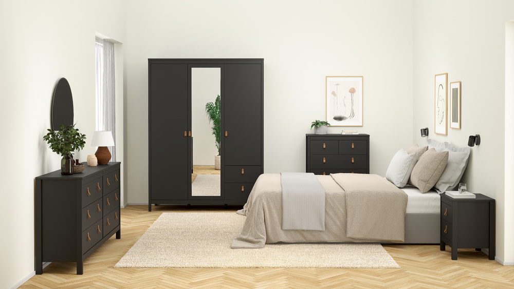 Czarna komoda Madrid to wszechstronny mebel, który pasuje do różnych stylów wnętrzarskich. W industrialnych aranżacjach będzie efektownym akcentem w otoczeniu betonowych ścian i metalowych dodatków. W klasycznej sypialnimoże pełnić funkcję eleganckiego miejsca na dekoracje, rośliny i stylowe lampy. W nowoczesnym salonie warto zestawić ją z minimalistycznym lustrem lub galerią obrazów, aby podkreślić jej wyrafinowany charakter. Bez względu na aranżację, Madrid doda wnętrzu klasy i praktyczności na najwyższym poziomie.