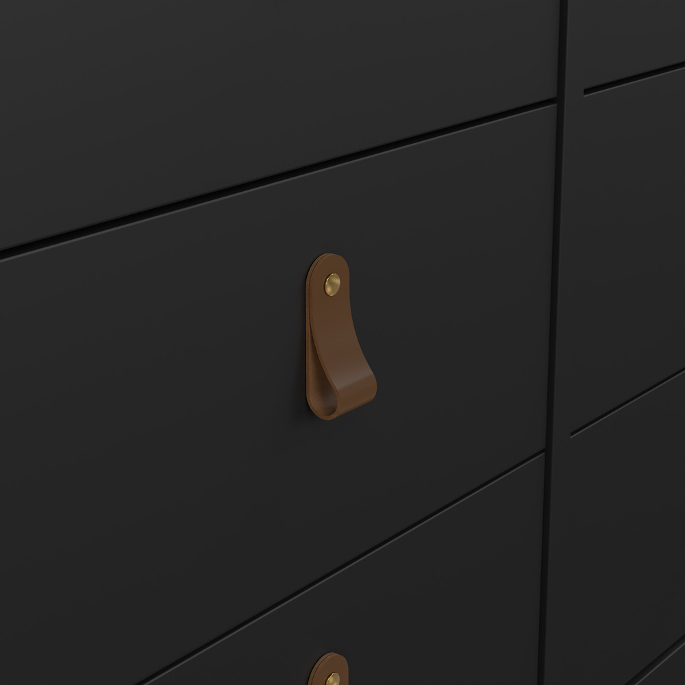 Zaprojektowana z myślą o nowoczesnych i eleganckich wnętrzach, komoda Madrid w czarnym macie to połączenie minimalistycznej formy i wyjątkowej pojemności. Aż osiem szuflad sprawia, że to mebel, który pomieści wszystko – od ubrań po akcesoria – nie rezygnując przy tym z designerskiego wyglądu.
