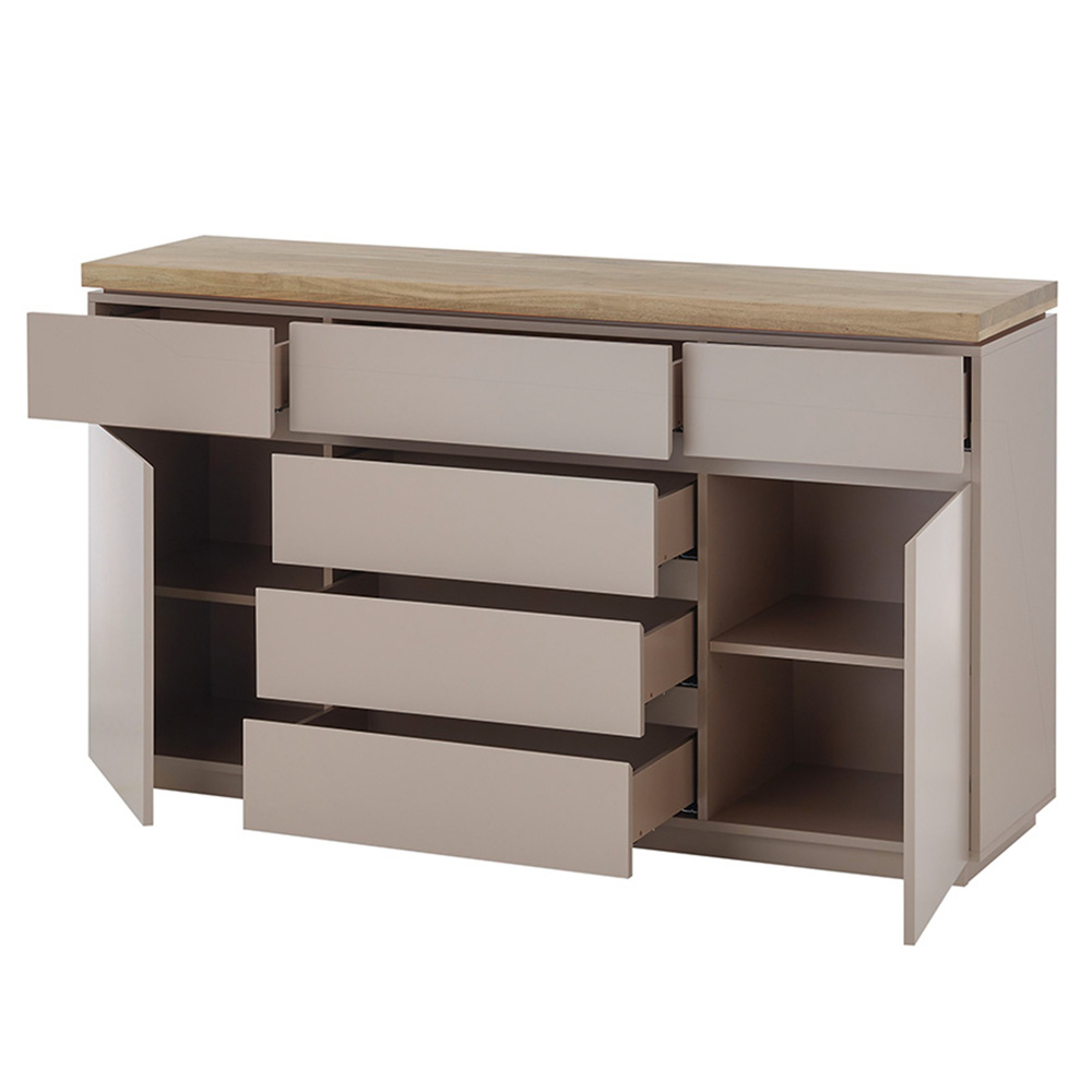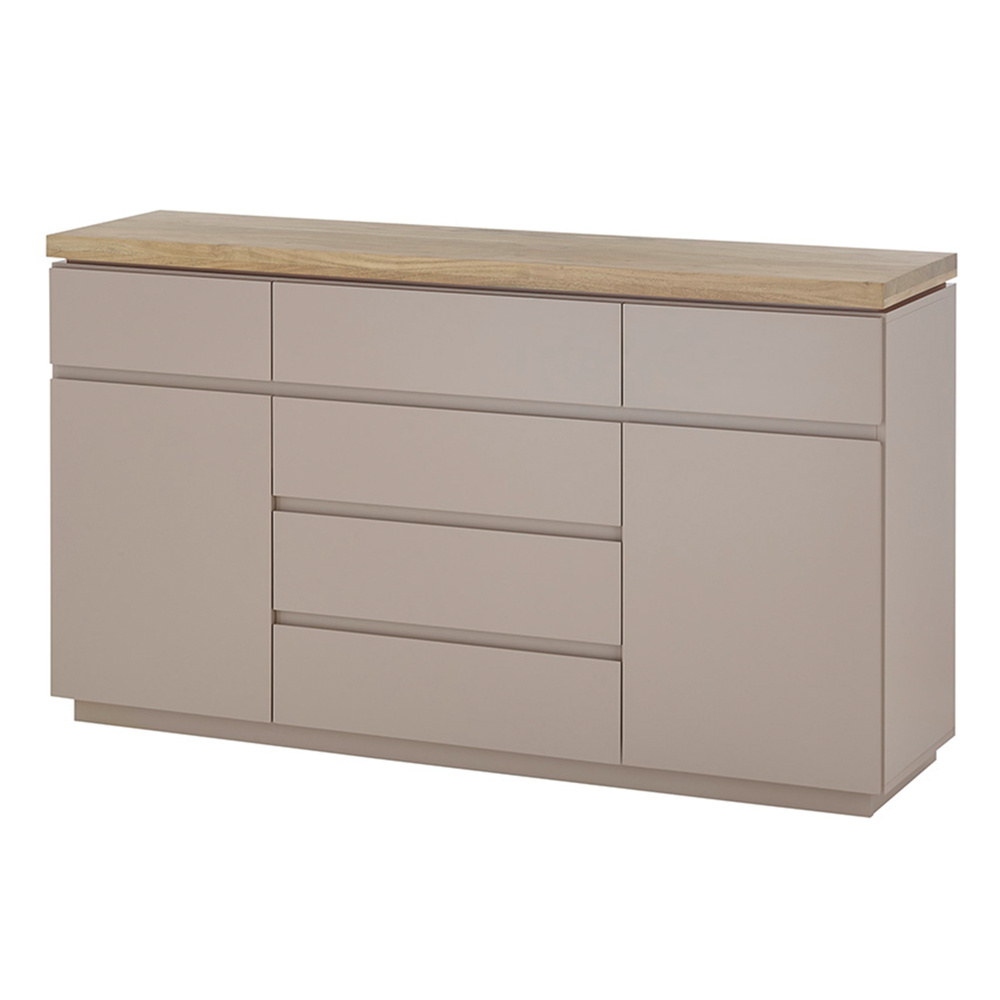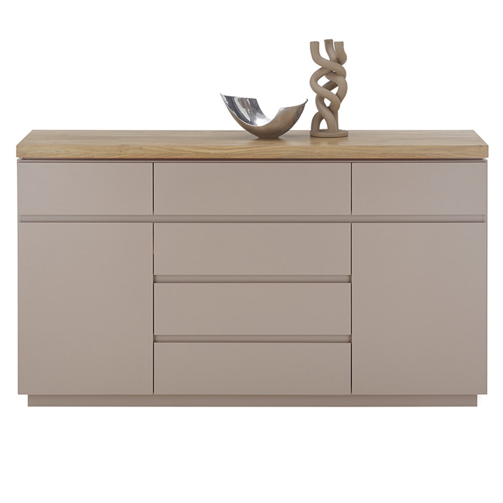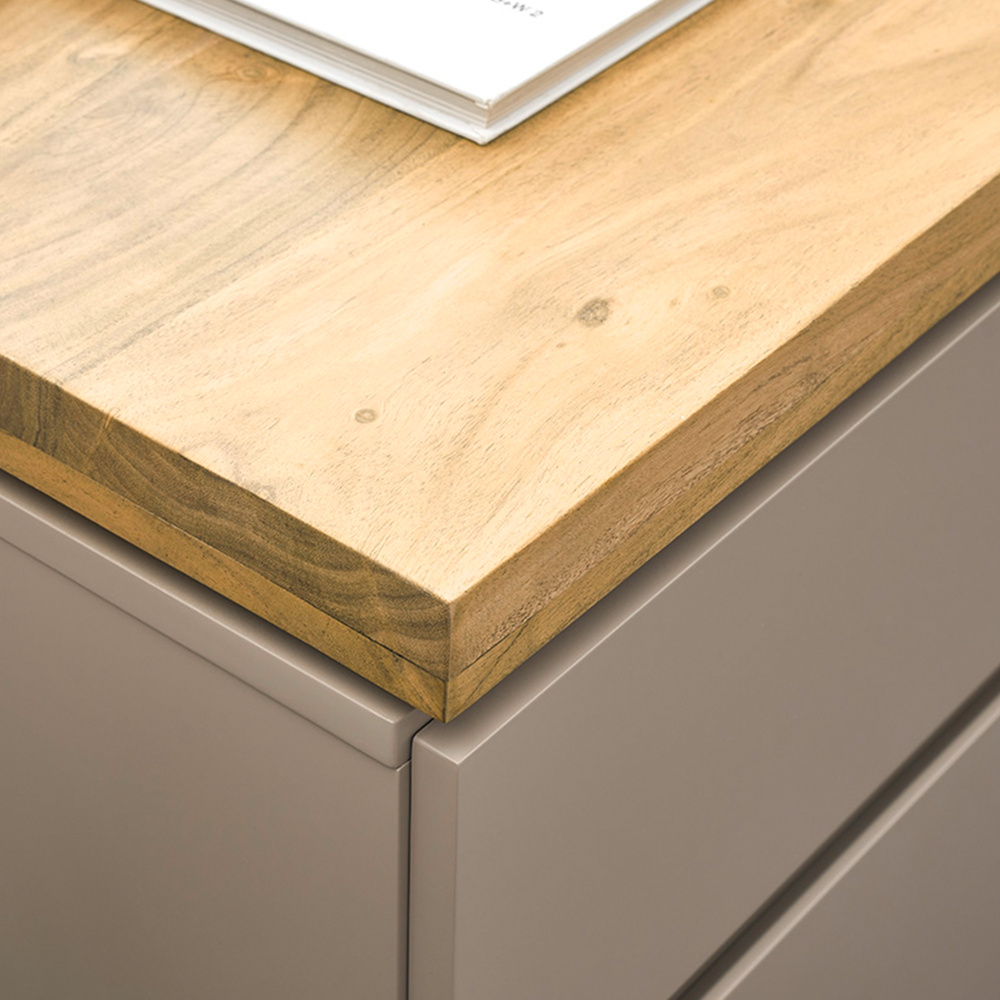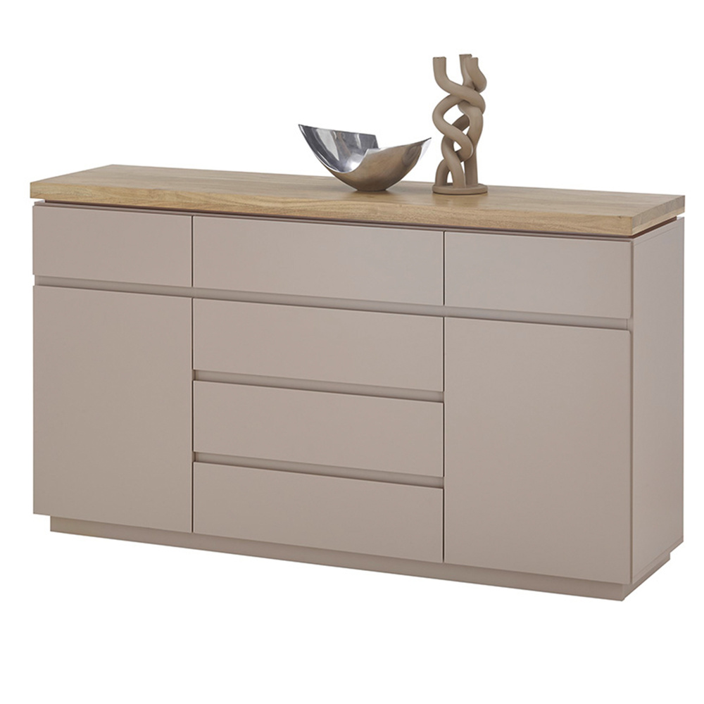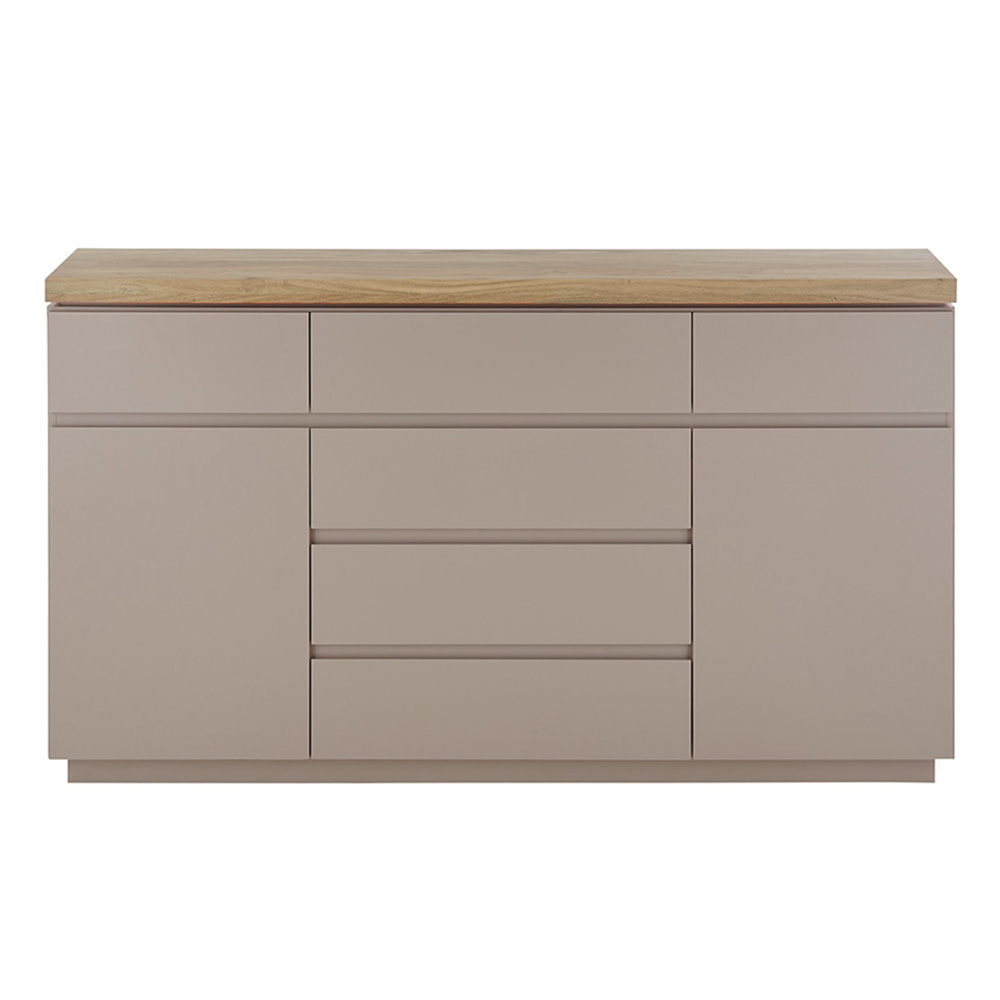 Komoda Cavo, 150 x 40 x 86 cm, beżowoszara mat, blat drewno akacjowe