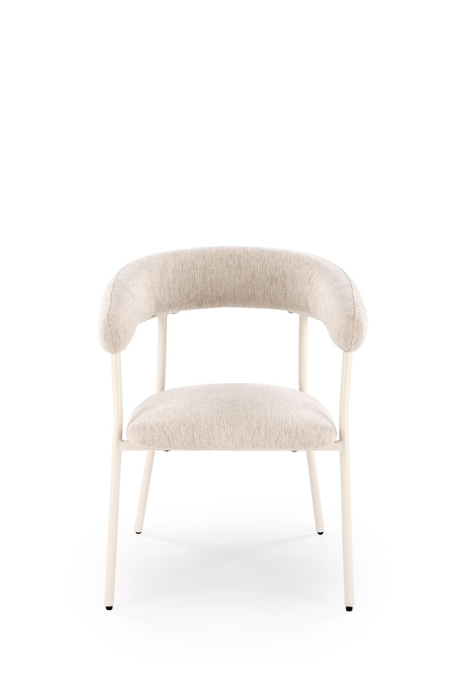 Model K-557 został zaprojektowany z myślą o lekkości i komforcie. Stalowe nogi o prostym, okrągłym profilu zapewniają stabilność, a zarazem subtelny wygląd. Ergonomicznie wyprofilowane oparcie w formie otwartego półokręgu oraz miękkie siedzisko pokryte tkaniną ODIN gwarantują wygodę użytkowania.