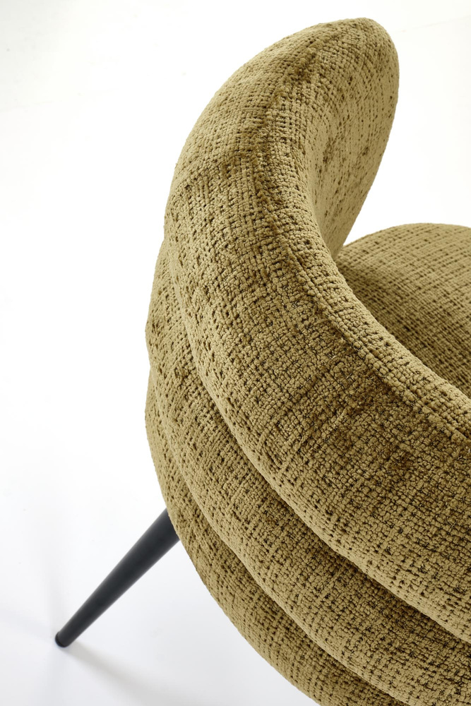 Wyjątkowe i przyciągające wzrok – krzesło K-575 w kolorze oliwkowym #38 to propozycja dla osób, które lubią łączyć wygodę z oryginalnym designem. Tapicerka z tkaniny Cremona o ciekawej strukturze nadaje mu charakteru, a smukłe, czarne nogi wykonane ze stali malowanej proszkowo podkreślają jego nowoczesny styl.