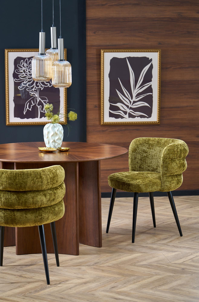 Oliwkowy kolor tapicerki to odważny akcent, który świetnie sprawdzi się w aranżacjach eklektycznych, nowoczesnych i boho. Krzesło K-575 pięknie komponuje się z drewnianymi stołami w naturalnych odcieniach, ale równie dobrze odnajdzie się w zestawieniu z czarnymi lub złotymi dodatkami. Doskonale nada się do jadalni, salonu, a nawet jako stylowe siedzisko w sypialni przy toaletce.