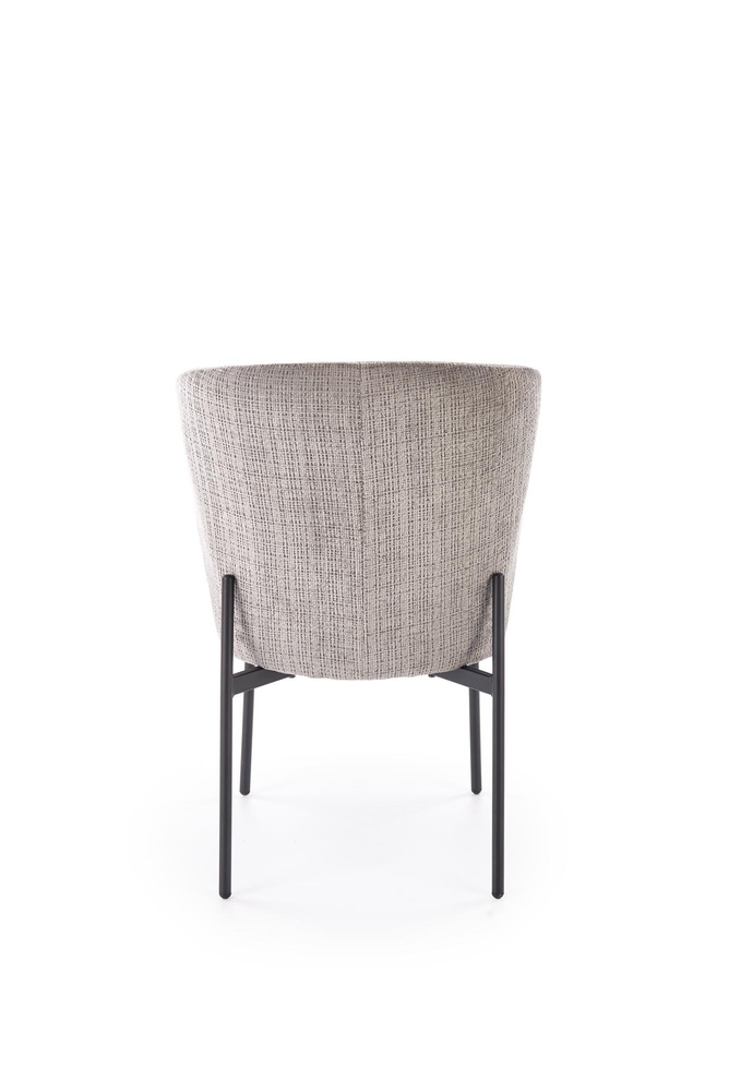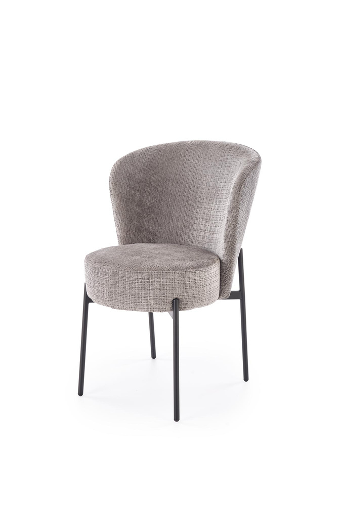 Model K-590 w popielatym kolorze świetnie wpisuje się w aranżacje w stylu nowoczesnym, minimalistycznym czy soft modern. Zestawiony z drewnianym stołem w naturalnych odcieniach stworzy przytulną przestrzeń jadalnianą, a w połączeniu z metalowymi i szklanymi akcentami doda wnętrzu eleganckiej harmonii. Może pełnić funkcję krzesła jadalnianego, ale też stylowego akcentu w salonie lub przy toaletce.