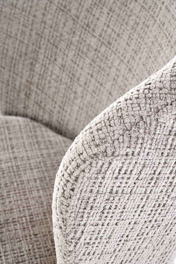 Krzesło K-590 zostało zaprojektowane z dbałością o szczegóły. Nogi w okrągłym profilu, wykonane ze stali malowanej proszkowo, zapewniają stabilne oparcie. Siedzisko i oparcie pokryte miękką tkaniną Cremona cechują się wysoką jakością oraz ciekawą strukturą materiału. Charakterystyczny, delikatnie zaokrąglony kształt oparcia otula sylwetkę i nadaje krzesłu unikalnego wyglądu.