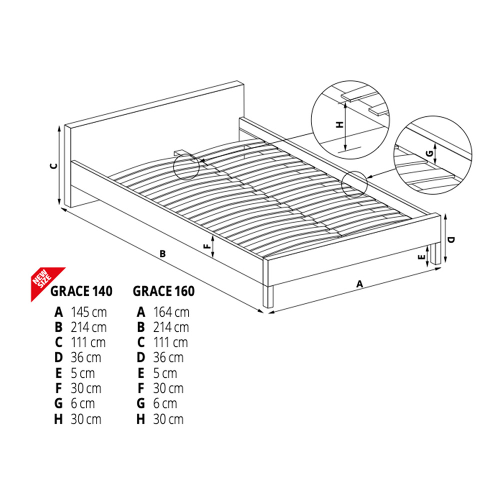 Łóżko Grace to gwarancja wygody i funkcjonalności w codziennym użytkowaniu. Wysoki zagłówek pozwala wygodnie oprzeć się podczas czytania lub porannej kawy w łóżku, a pojemne szuflady pomagają utrzymać porządek nawet w niewielkiej sypialni. Dzięki uniwersalnej kolorystyce mebel doskonale wpisze się zarówno w przestrzeń o ciepłym, jak i chłodniejszym charakterze.