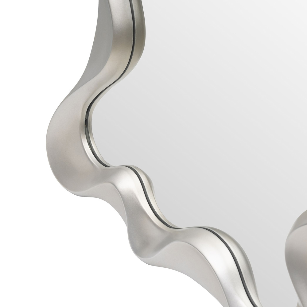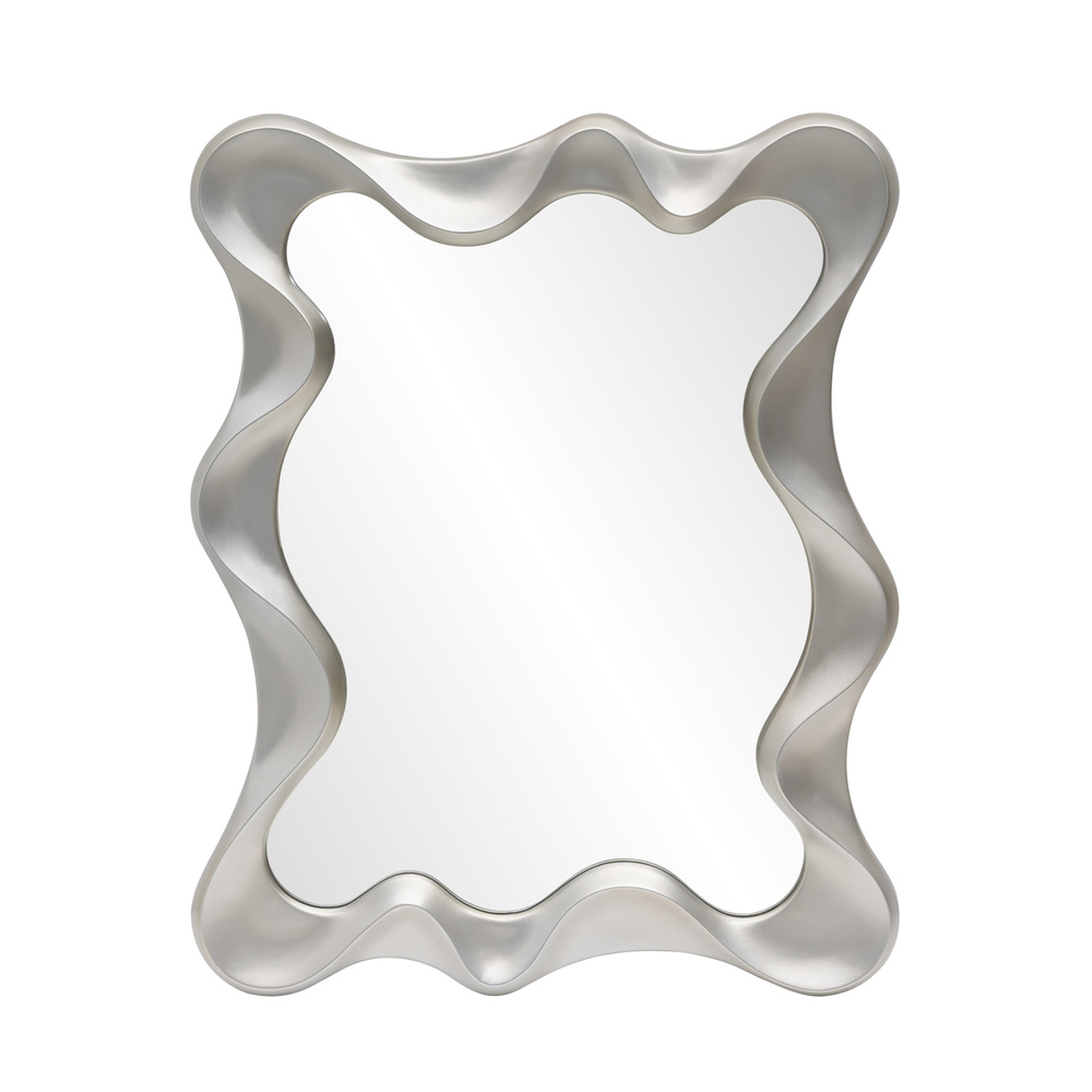Dekoracyjne lustro Deco to wyraz odważnego designu i współczesnej elegancji. Jego dynamiczna, falista rama w srebrnym antycznym kolorze przyciąga wzrok i dodaje wnętrzu charakteru, łącząc artystyczną formę z praktyczną funkcją.