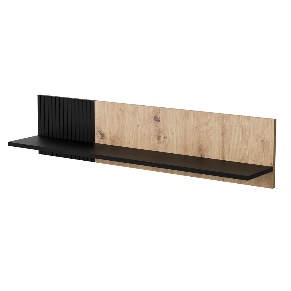 Półka wisząca dąb artisan / czarna mat 110 x 20 cm Arden