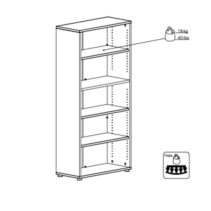 Regał biurowy Prima to przykład doskonałego połączenia trwałości i nowoczesnego designu. Konstrukcja opiera się na solidnej płycie meblowej, która zapewnia stabilność nawet przy intensywnym użytkowaniu. Krawędzie wykończone odpornym na uszkodzenia laminatem ABS skutecznie chronią mebel przed codziennym zużyciem, zapewniając mu trwałość. Całość wsparta jest na subtelnych, ale niezwykle praktycznych plastikowych nóżkach, które zapobiegają ślizganiu się mebla i minimalizują ryzyko zarysowania podłogi. Stylowe, metalowe uchwyty w kolorze szarym dopełniają całości, dodając regałowi elegancji oraz wygody w użytkowaniu.