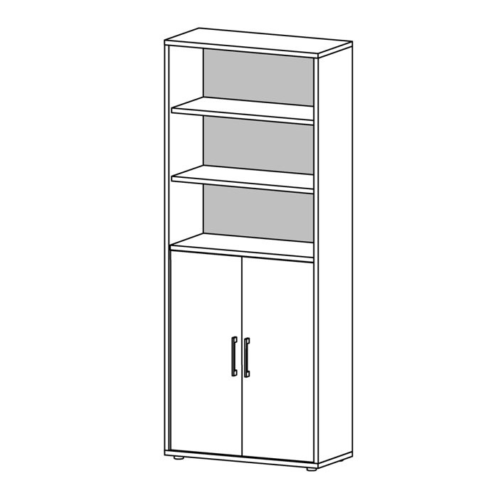 Dwupoziomowa konstrukcja regału Prima to idealne rozwiązanie dla osób, które cenią sobie porządek i ergonomię. Dwie otwarte półki w górnej części zapewniają szybki dostęp do najczęściej używanych dokumentów lub dekoracyjnych elementów, takich jak rośliny czy książki. Dolna część, zamykana na drzwi, oferuje dyskretne miejsce na przechowywanie rzeczy wymagających ochrony przed kurzem lub niepożądanym dostępem. Takie rozwiązanie pozwala zachować estetykę i uporządkowaną przestrzeń w każdym wnętrzu.