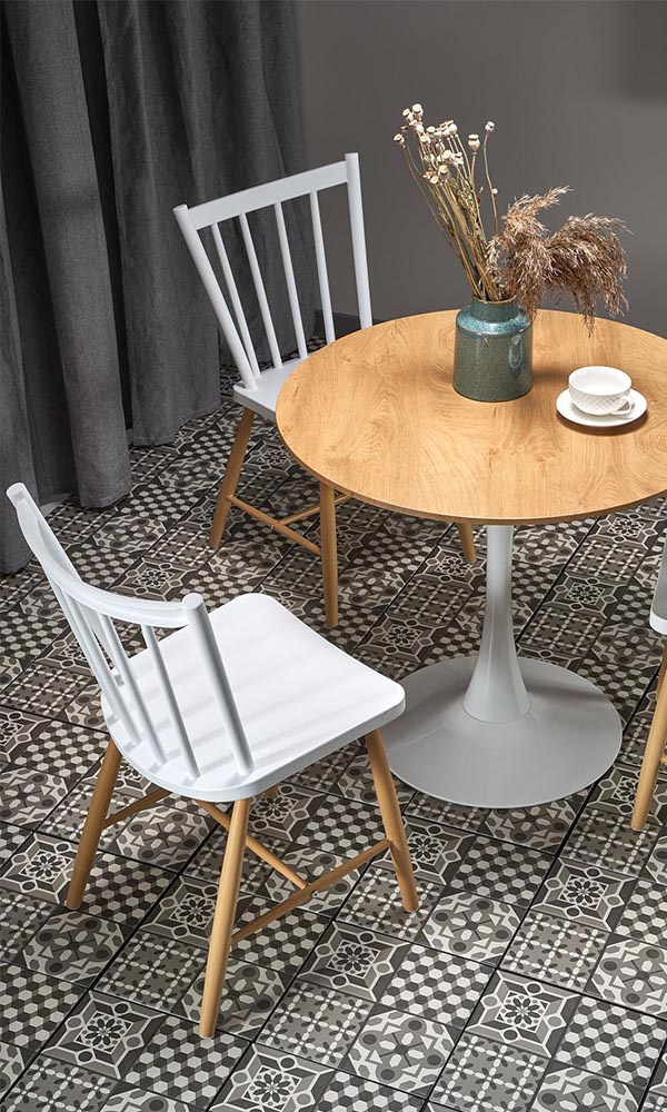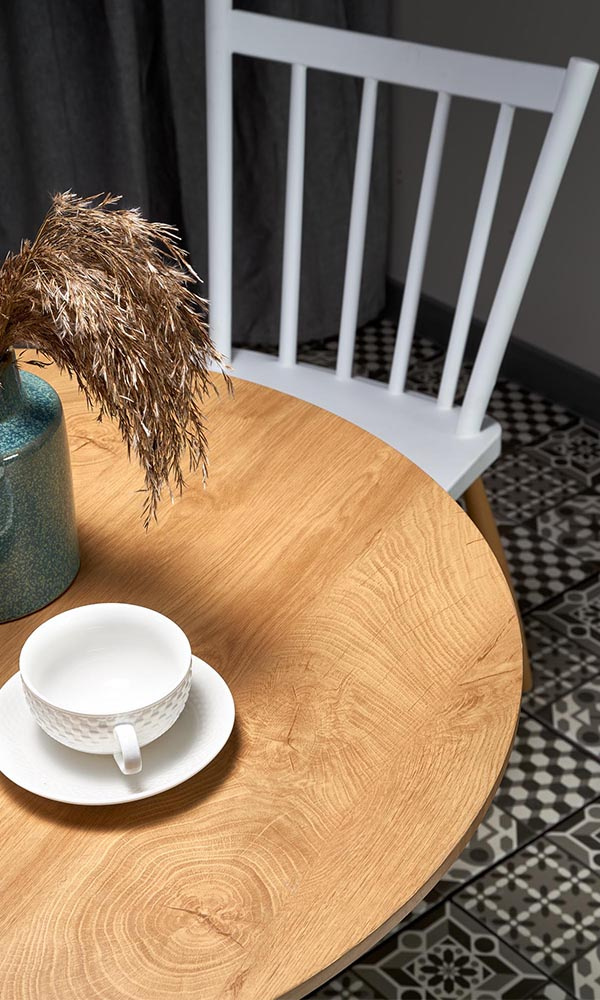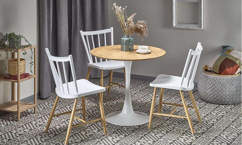 Stół okrągły dąb złoty / biały mat / połysk 80 cm Sting