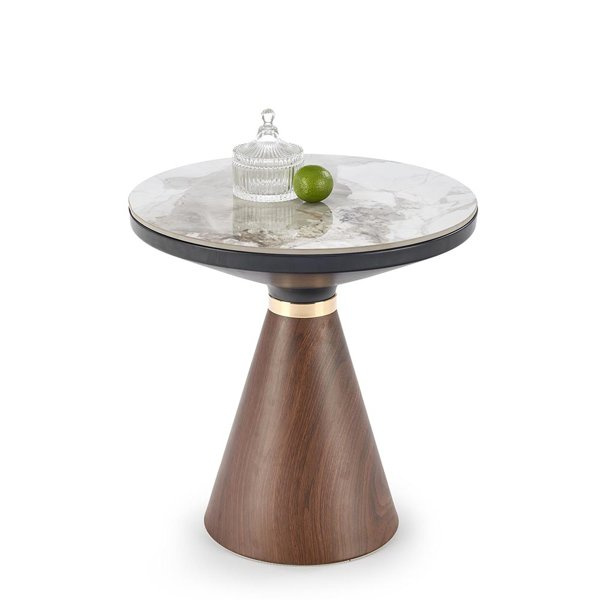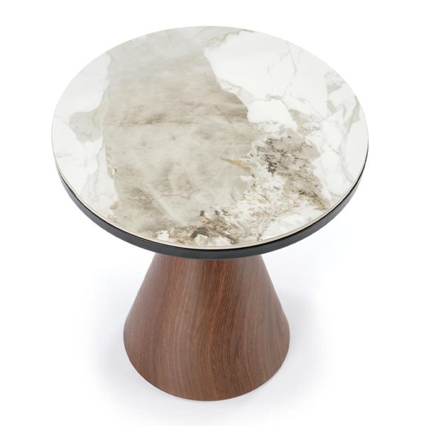 Stolik kawowy okrągły biały marmur / orzech mat 50 cm Genesis S
