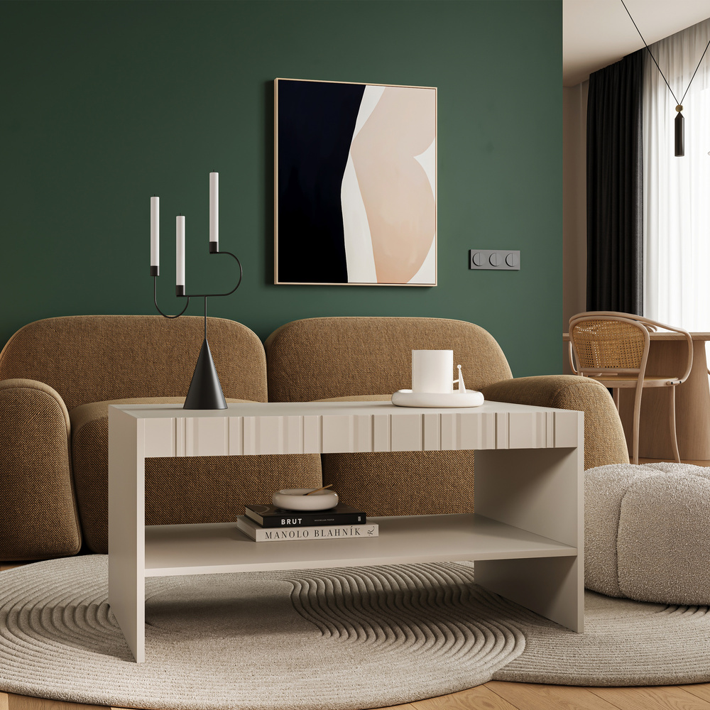 Stolik kawowy z półką Milo, 100 x 57 cm, beżowy mat
