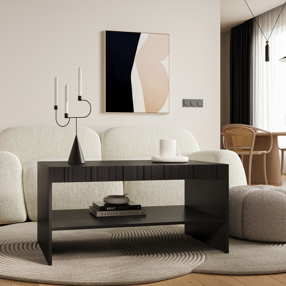 Stolik kawowy z półką Milo, 100 x 57 cm, czarny mat