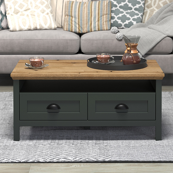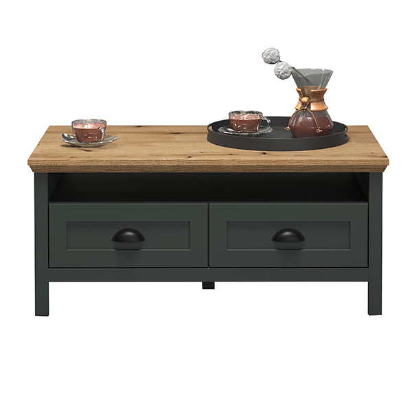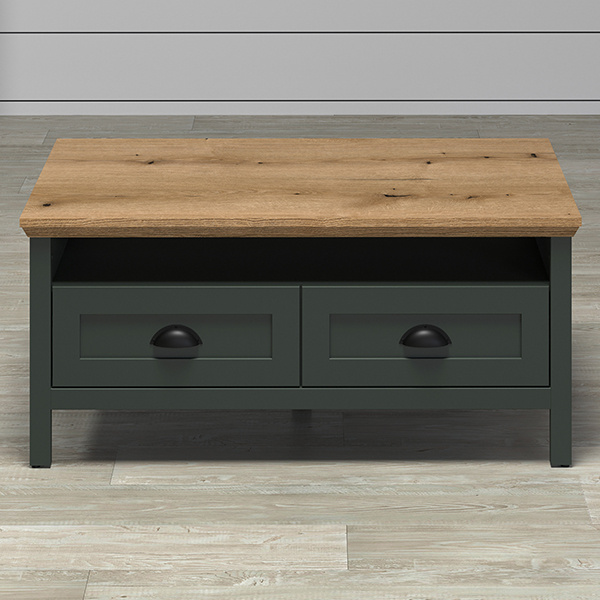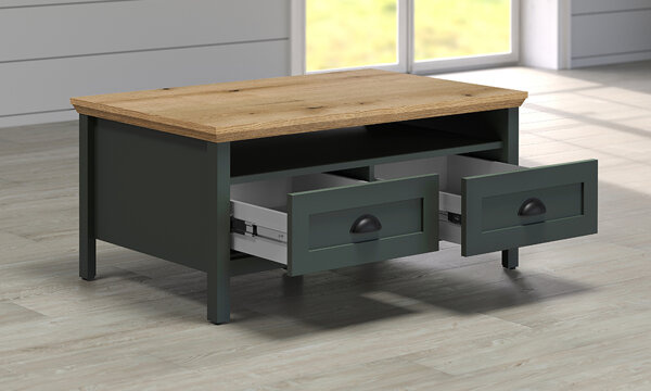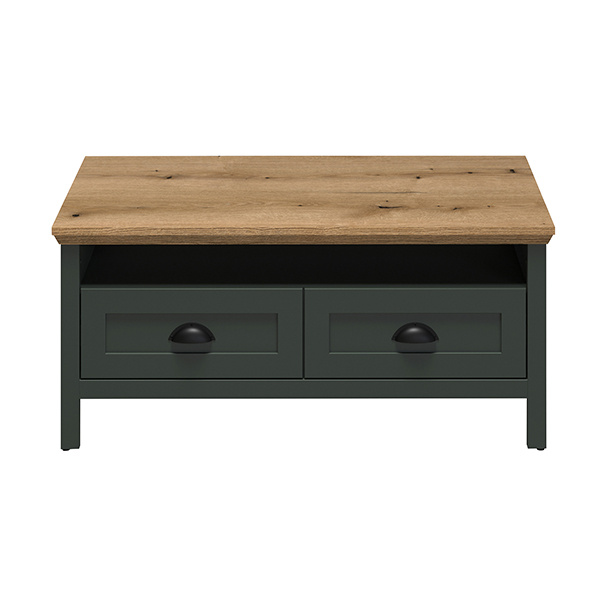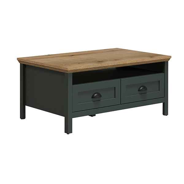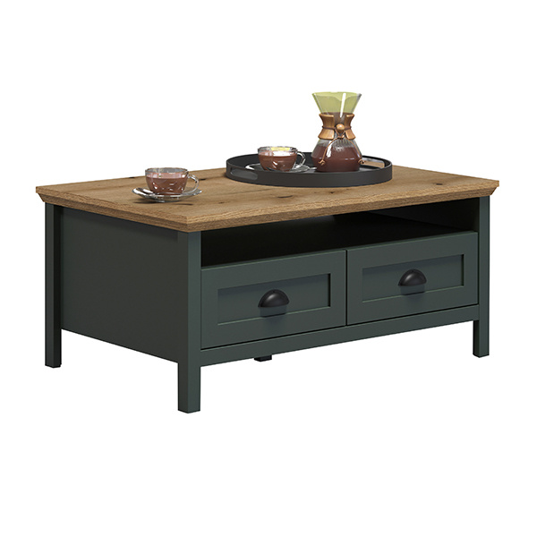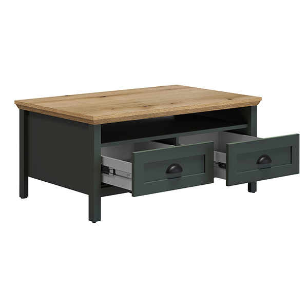 Stolik kawowy z szufladą zielony / dąb mat 101 x 60 cm Emerald