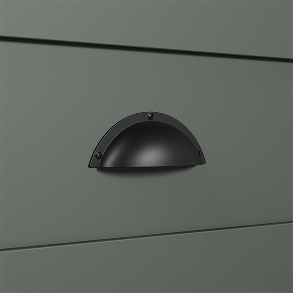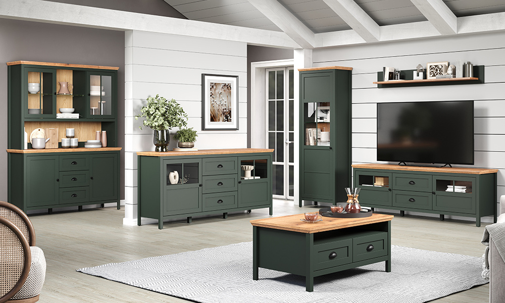Głęboki kolor korpusu: ciemnozielony laminat dekoracyjny dodaje meblowi wyrazistości, nadając mu unikatowy styl.