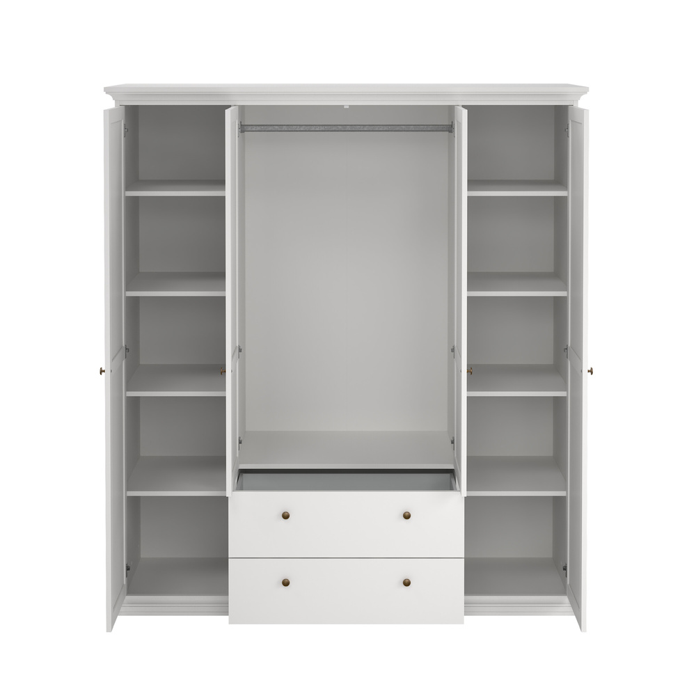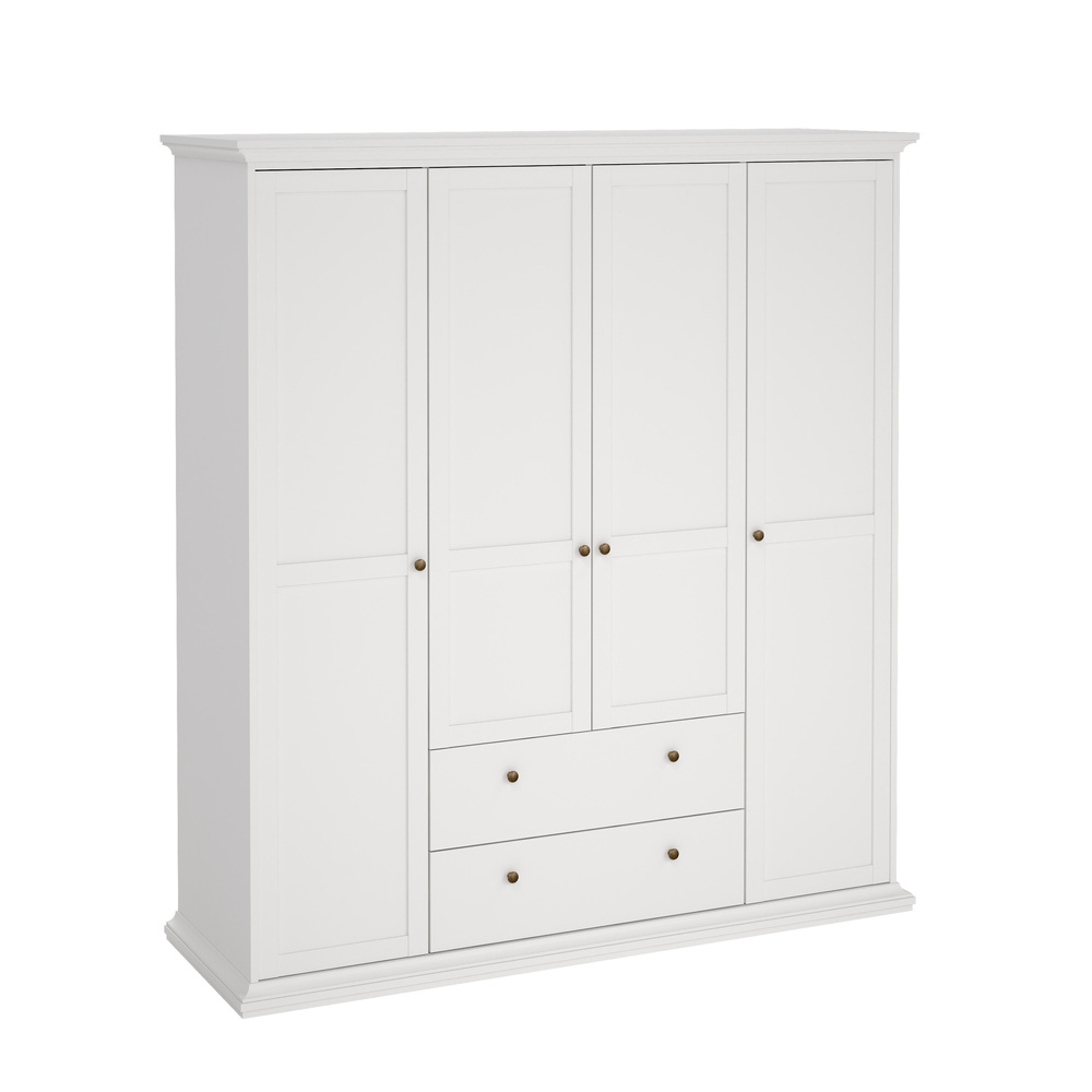 Szafa czterodrzwiowa z szufladami biała mat 182 x 201 cm Paris