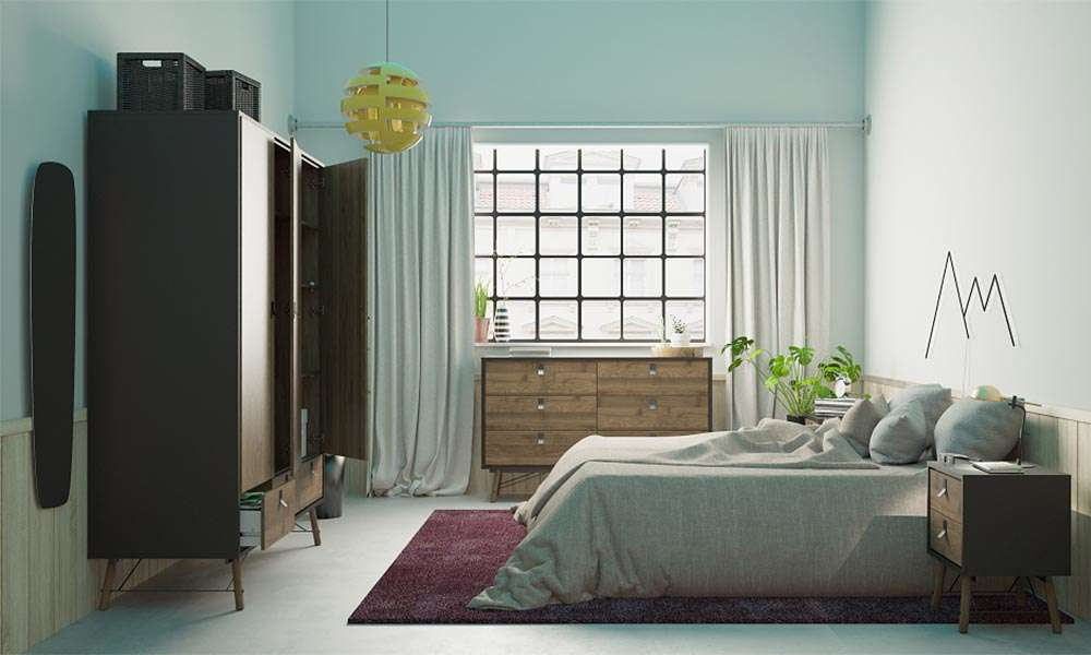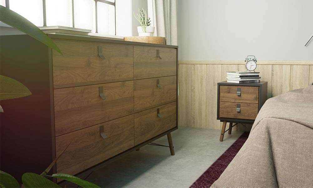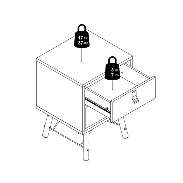 Ryan to kolekcja mebli zachwycająca swoją lekką formą i elegancją, która pozwoli funkcjonalnie i pięknie zorganizować Twoją sypialnie.Harmonijna, kontrastująca kolorystyka pozwoli Ci zaaranżować miejsce spełniające Twoje wymagania praktyczne oraz stylistyczne, które będą fantastycznie korespondowały w każdej przestrzeni. Szafka nocna to mebel bez którego bardzo trudno wyobrazić sobie funkcjonalną sypialnie, dlatego Ryan stanie się Twoim rannym i wieczornym niezbędnikiem. To fantastyczne miejsce na odłożenie telefonu, książki czy ustawienie lampki nocnej, a praktyczne szuflady pozwolą Ci na przechowywanie większej ilości drobiazgów. Stolik nocny Ryan to mebel, który uzupełni Twoją aranżację wnętrza i wniesie do Twojej sypialni pozytywne zmiany praktyczne oraz estetyczne.