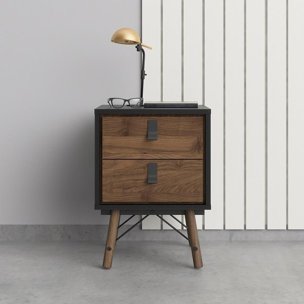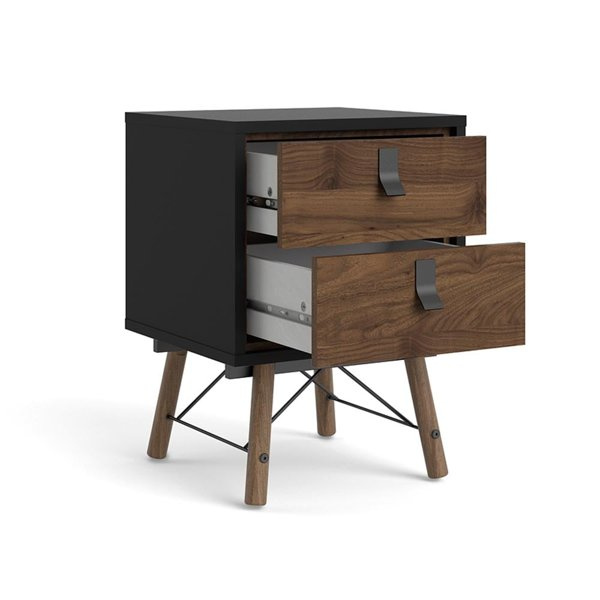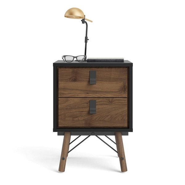 Nowoczesna szafka nocna Ryan 2S orzecz/czarny mat