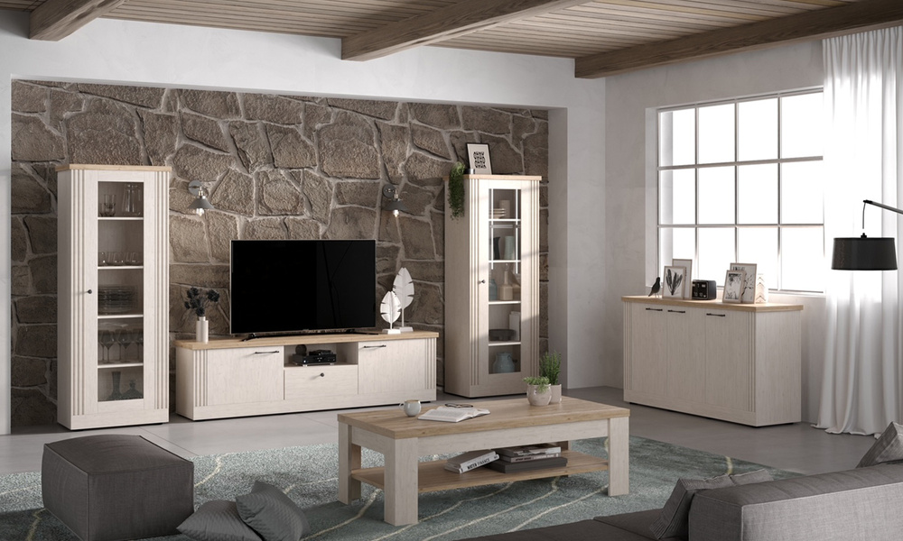 Szafka RTV Avina doskonale odnajdzie się zarówno w klasycznym, jak i nowoczesnym wnętrzu inspirowanym naturą. W połączeniu ze ścianą z cegły lub kamienia, miękkim dywanem i wiklinowymi dodatkami stworzy przytulny kącik do oglądania filmów i relaksu. Jeśli dodasz do niej witrynę z tej samej kolekcji i kilka ceramicznych wazonów, uzyskasz spójną i klimatyczną aranżację z duszą.