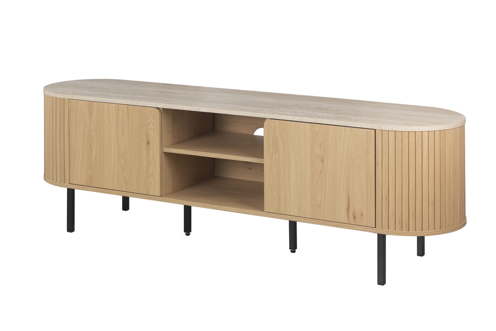 Szafka RTV z lamelalami dąb / trawertyn mat 160 cm Fabia