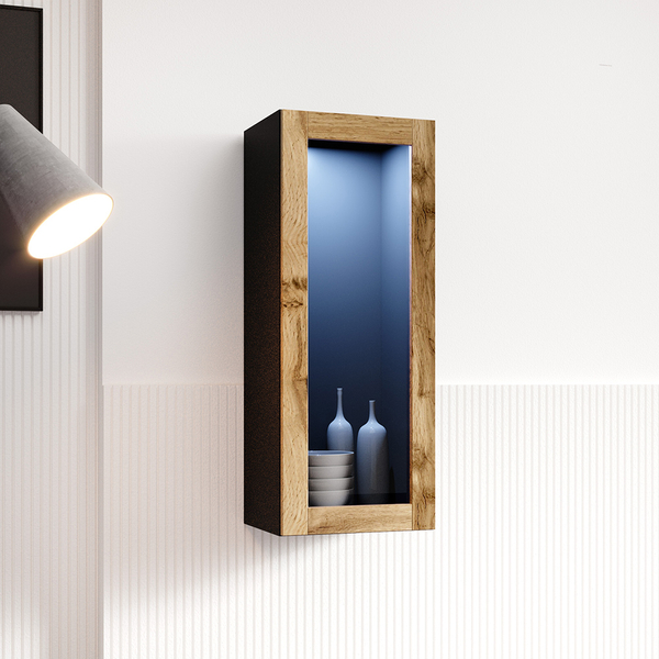Wisząca przeszklona witryna Vidago 90 cm to propozycja dla miłośników ponadczasowej elegancji i harmonii kolorów. Witryna to doskonały mebel do wyeksponowania ozdób, które oddadzą charakter wnętrza i pozwolą nam wyróżnić nasze ulubione przedmioty. Witryna przeszklona Vidago doskonale prezentuję się z oświetleniem, które jest opcjonalne, natomiast jeśli zależy nam na efektownej aranżacji warto wziąć pod uwagę takie rozwiązanie w zależności od naszych preferencji i potrzeb wnętrza. Wspaniale zaprezentuję się w jadalni, ale również współczesnym salonie z nutką industrialnych i loftowych akcentów gdzie fantastycznie będzie kontrastować z betonowymi dodatkami. Jeśli marzysz o stworzeniu nowoczesnej aranżacji z charakterem meble z kolekcji Vidago będą doskonałym rozwiązaniem!