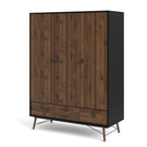 Szafa trzydrzwiowa z szufladami czarna / orzech mat 150 x 200 cm Ryan